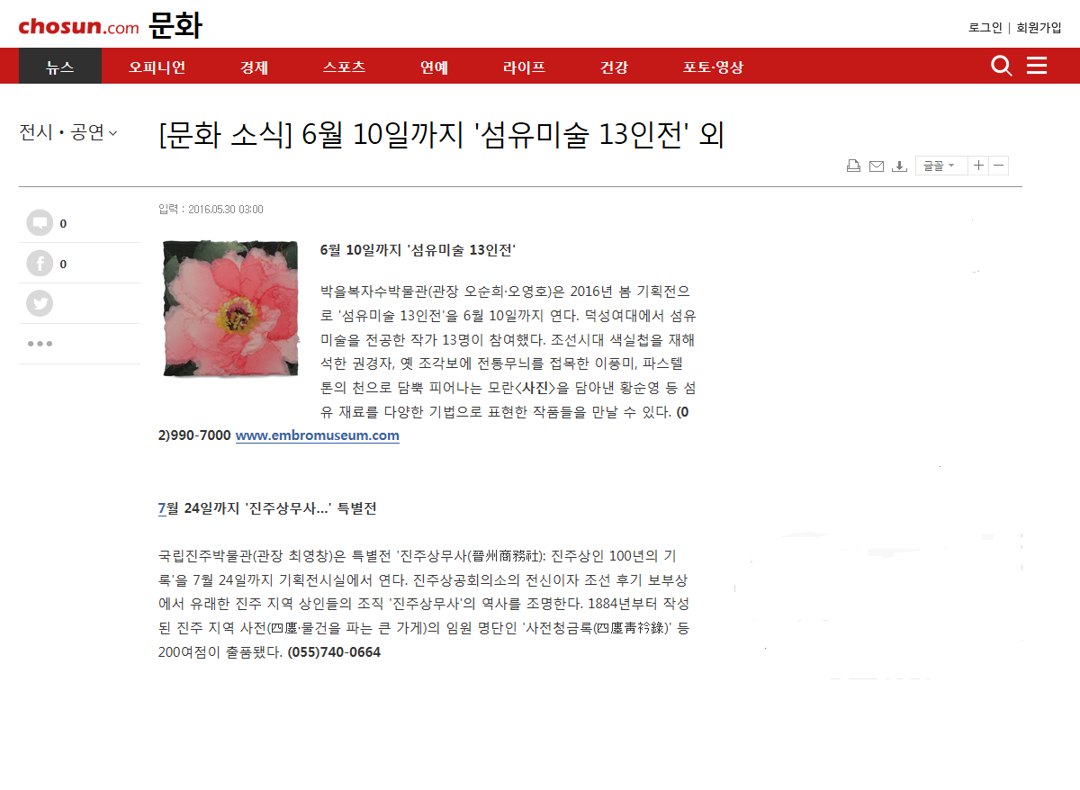 2016 º½±âȹÀü '¼¶À¯¹Ì¼ú13ìÑ'î÷  Á¶¼±ÀϺ¸ 2016³â5¿ù30ÀÏ º¸µµ³»¿ë