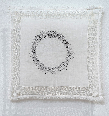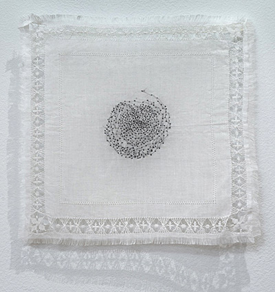 | 꿈꾸는 씨앗, 2011, 35x35cm, Thread and Vintage Handkerchief |