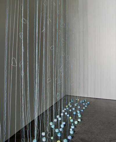 | 보슬비, 2012, Installation, Pigmented Thread, site specific installation, Dimensin various |