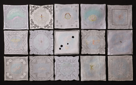 | 얼굴없는여인들, 2007-2011, 각각 33x33cm, 손자수, 실, 19세기 여자손수건(1) |