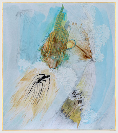 | 꿈꾸는 씨앗, 2011, 35x44cm, Thread and Vintage Handkerchief |