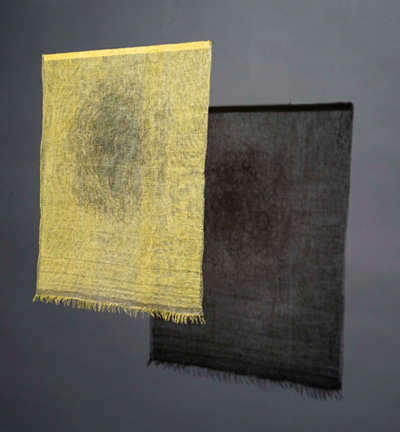 | SKETCH ON YELLOW SHADOW, 2010, 76x76cm, linen, thread, paint, woven |