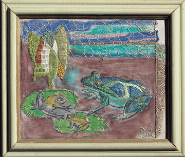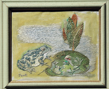 | 개구리 A, 1979년, 비단에 자수, 15×12.2㎝ |