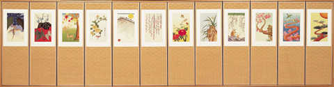 | 화투(花鬪)의 이미지, 1997년, 비단에 자수, 108.5×39.7㎝ 12폭 |