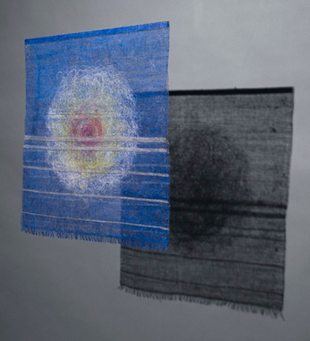 | SKETCH ON BLUE SHADOW, 2010, 76x76cm, linen, thread, paint, woven |