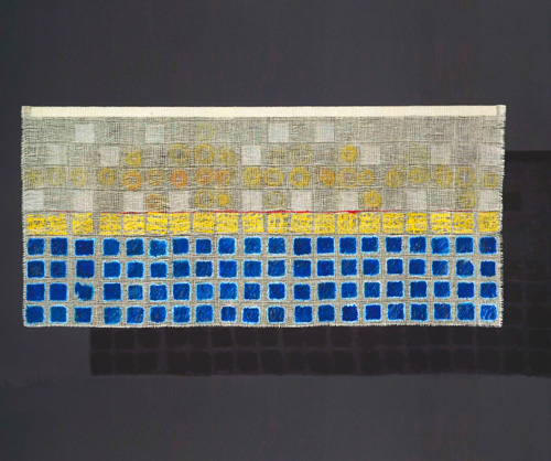 | SKETCH ON YELLOW SHADOW, 2010, 76x76cm, linen, thread, paint, woven |