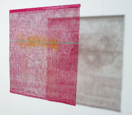 | SKETCH ON RED SHADOW, 2010, 76x76cm, linen, thread, paint, woven |