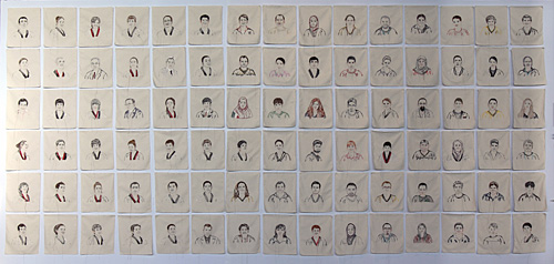 | …을 잇다, 2011, 105×359㎝, 광목, 견사, 인견사, 수자수, 기계자수 |