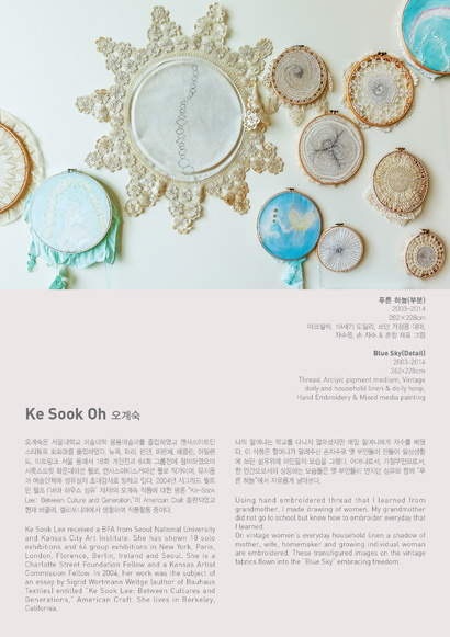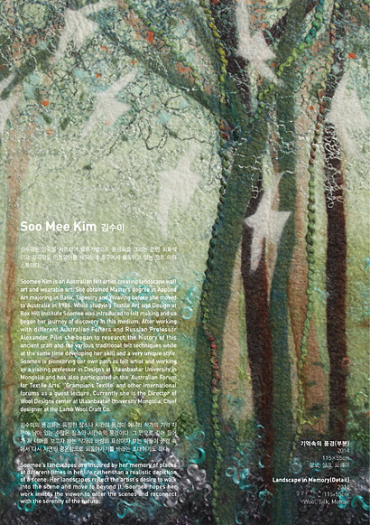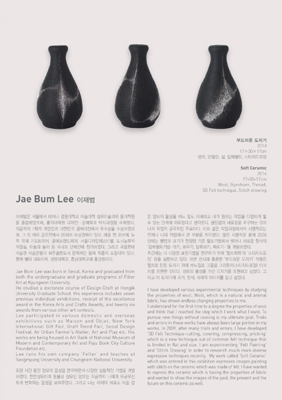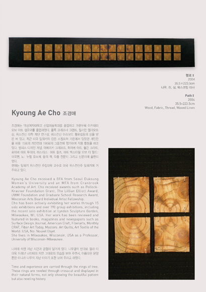 미국, 한국, 호주 등지에서 활발히 활동 중인 5인의 작가를 초대하여 다양한 섬유조형 작품들을 전시합니다. 김수미, 오계숙, 윤순란, 이재범, 조경애는 섬유예술의 재료와 기법의 한계에 머무르지 않고 현대문화의 흐름에 맞춰 작가의 개성이 담긴 새롭고 다양한 표현을 이끌어내고 있습니다.