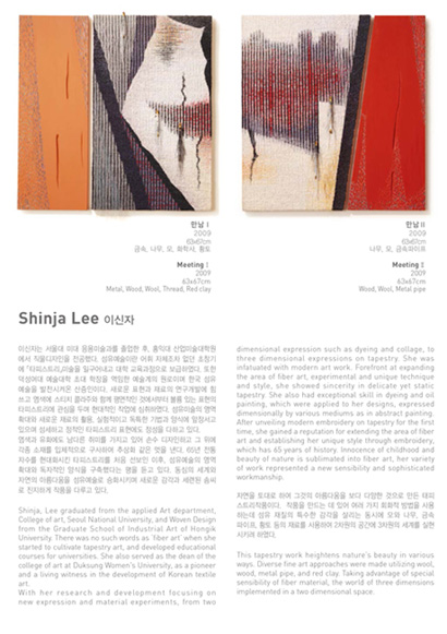 올해로 설립 50주년이 되는 덕성여대 섬유미술과는 생활미술, 응용미술, 산업미술, 염직디자인, 섬유미술, 텍스타일 디자인 전공 등으로 그 명칭이 시대적인 변천에 맞춰 변화하였으며, 한국, 프랑스, 이탈리아, 미국, 영국 등지에서 수학한 6인의 교수님들의 지도 아래 괄목할만한 발전을 해왔습니다. 특히 이번 전시는 섬유미술계의 원로인 이신자 교수의 작품세계를 포함해서 그 이후 반세기에 걸친 현대 섬유미술의 발자취를 한 공간에서 볼 수 있으며, 섬유의