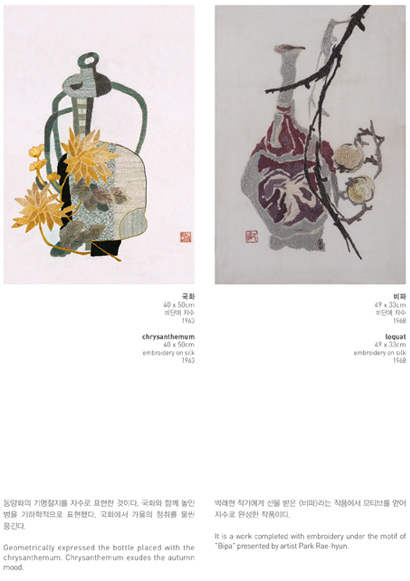 1층의 기획전시와 더불어 2층 상설전시장에서는 한국 근·현대 자수예술가 박을복 선생의 ‘표정’과 ‘집으로 가는 길’과 같은 전위적인 자수 작품들과 ‘국화와 원앙’, ‘자수 124종’, ‘꿈’ 등의 전통적인 자수 작품들을 함께 감상할 수 있으니 많은 관심 부탁드립니다.