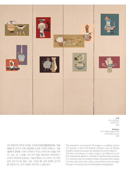 현대미술은 서로 다른 장르의 경계를 넘나들고 구분이 없어지는 흐름을 보이는데, 이를 자수예술에 적용하여 모던하고 탈장르화를 추구한 예술세계를 보실 수 있습니다.